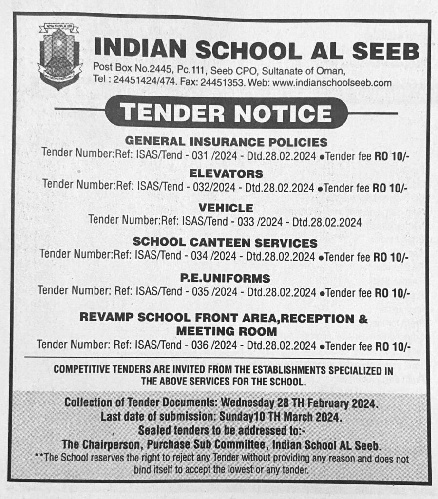 TENDER ANNOUNCEMENT 3rd OCTOBER 2024