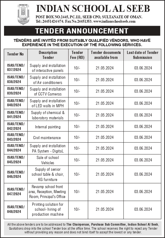 ISAS/Tend/21/2023-24 | School painting & civil maintenance | Advt. | |