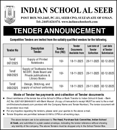 TENDER ANNOUNCEMENT 9th SEPTEMBER 2025